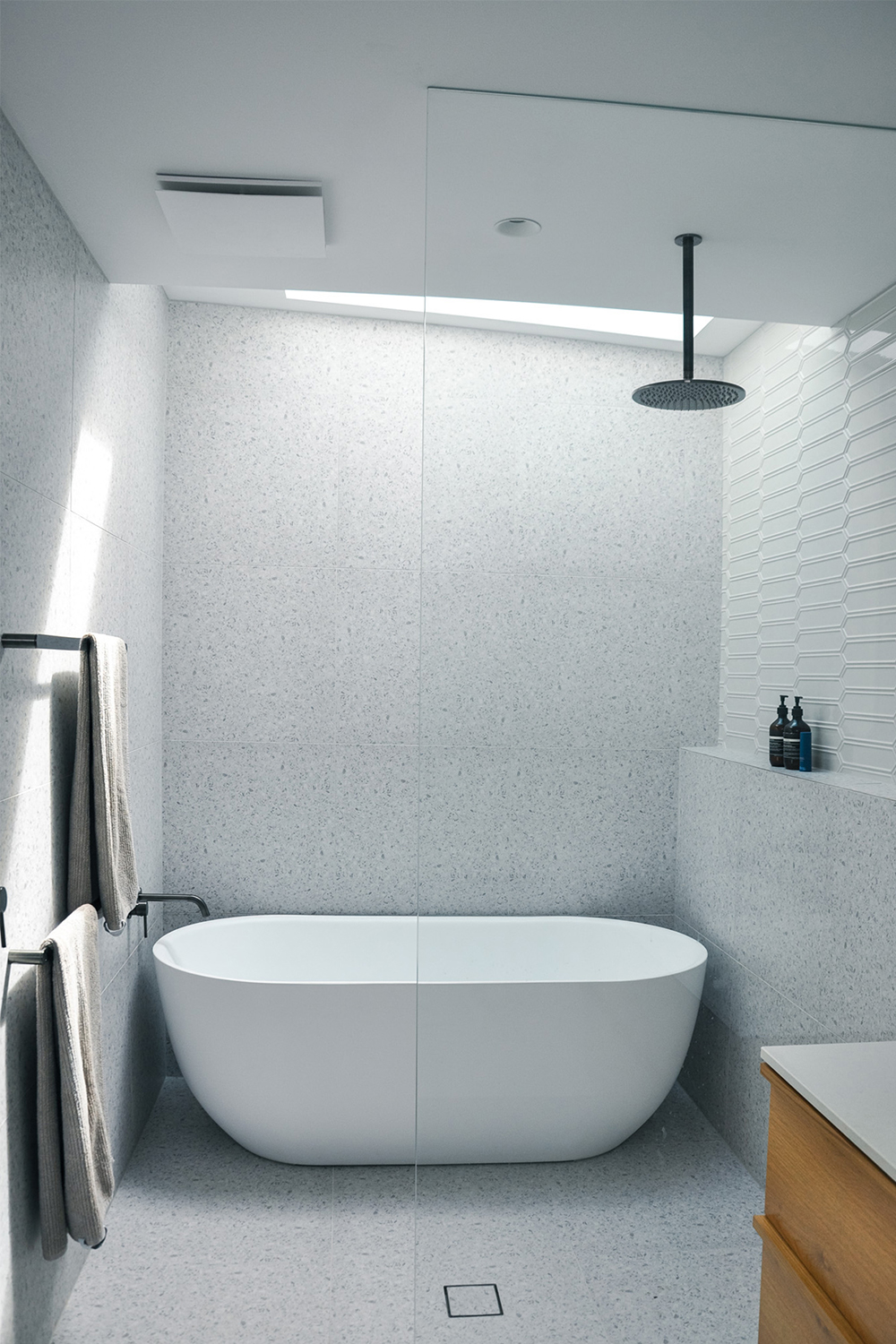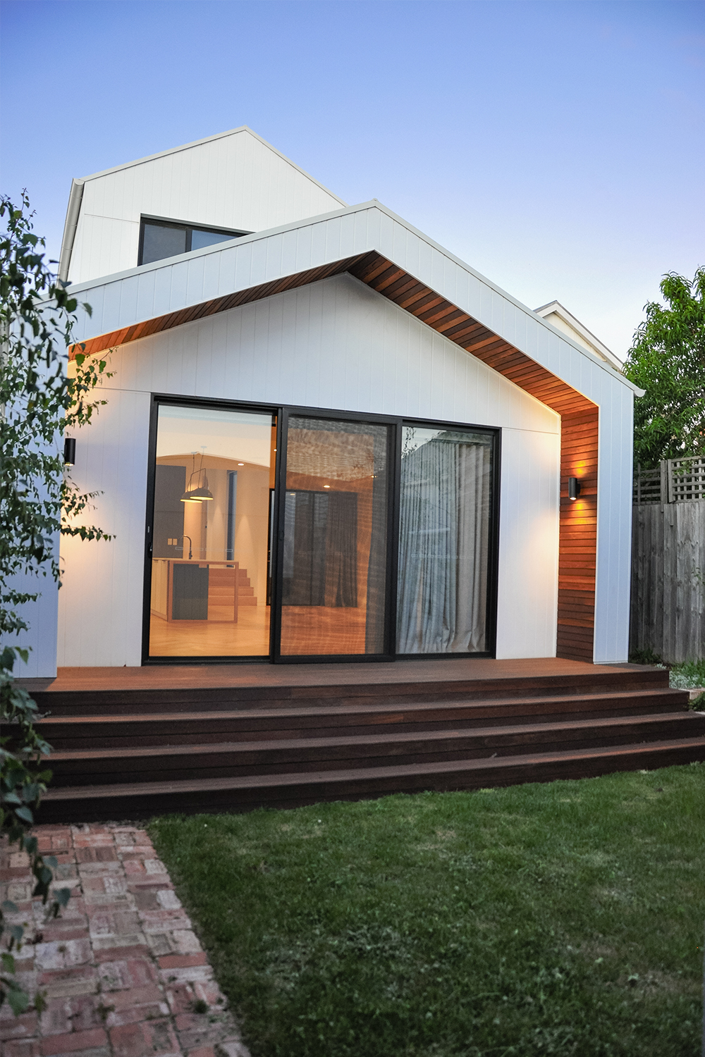 Through the smart use of all available land, the original dwelling has been predominantly maintained as bedrooms, with the introduction of a new bathroom, laundry and lightwell added to service this original dwelling and introduce natural light.