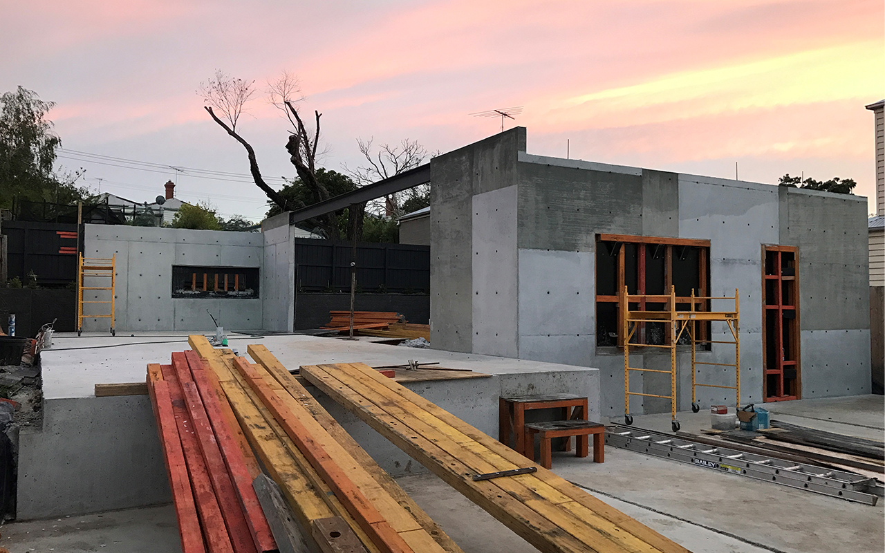 A split level extension was added clad in black zinc and incorporating in-situ concrete panels, along with expansive glazing. This modern extension was carefully designed to appear concealed from the street, with the dwelling only revealing it's true extents once entered.