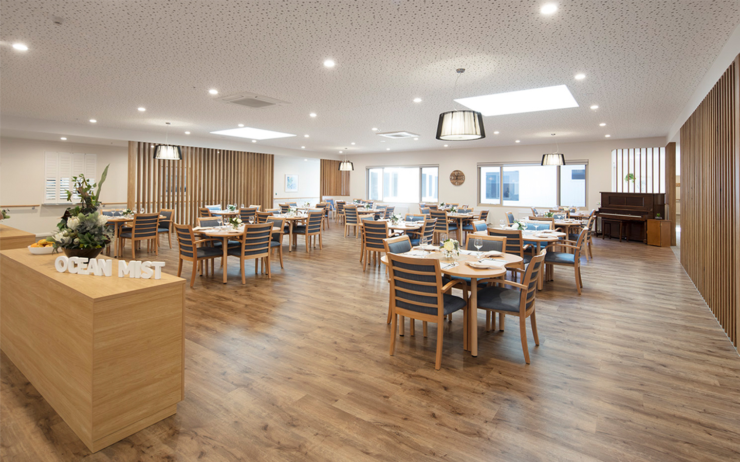 The design for the facility introduced natural timbers and neutral colours in the external facades, blending in with the coast environment, with the natural timbers utilised as features in the interiors providing synergy between the inside and outside. The building comprises of two separate residential wings on either side of a central wing with lounge, dining and other communal facilities that open to generous landscapes.